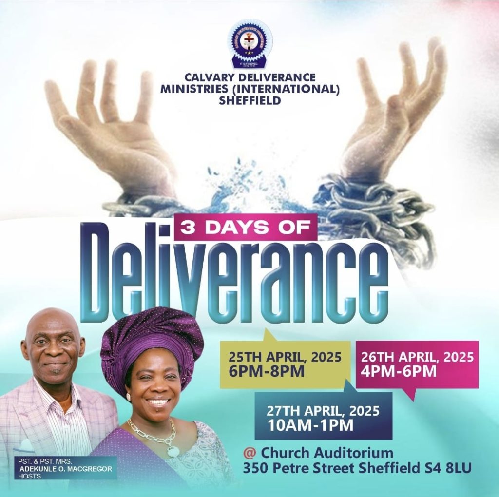 3 days of deliverance starting from the 25th of April till the 27th of April 2025. Come and experience GOD like never before.